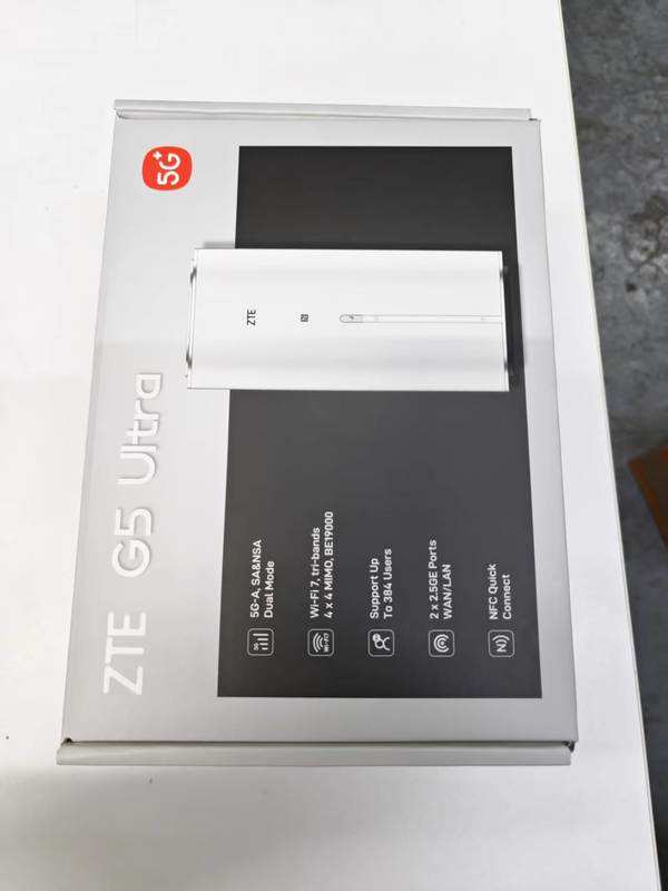 ZTE G5 Ultra is the world's first 5G AI FWA(Fixed Wireless Access) Router, which can provide users with a faster and smoother network experience with a 20% increase in bandwidth utilization and a 30% decrease in network congestion.